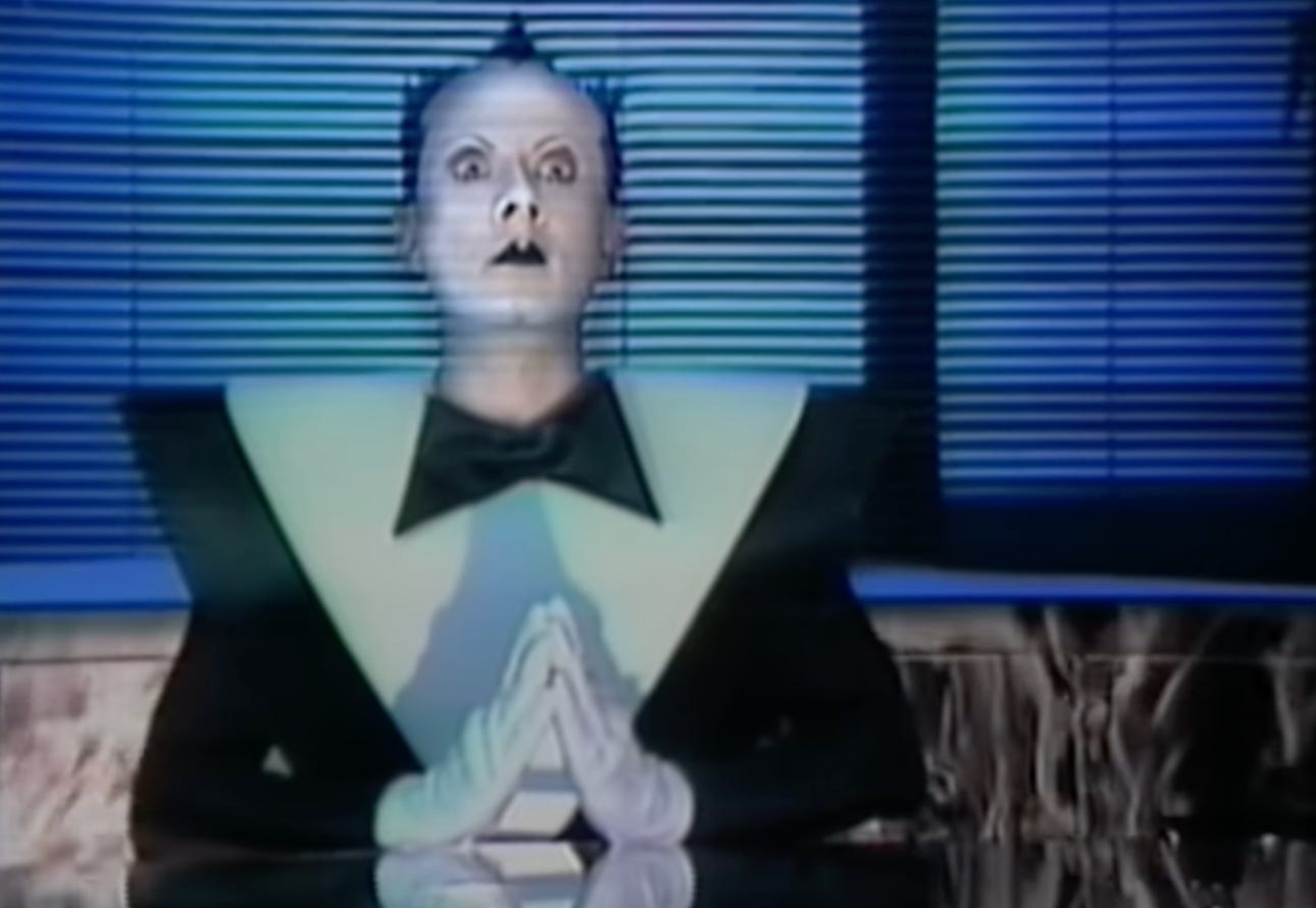 This song in particular sees Klaus having more fun than usual and even slightly dropping the alien persona a bit (or just wearing a suit and a cowboy hat). He’s joined by performance/drag artist Joey Arias (also seen on the SNL clip) and Man Parrish, a huge figure that bridges the gap between early hip-hop and electronic music, who worked with everyone from Yellow Magic Orchestra to Kraftwerk to Michael Jackson.